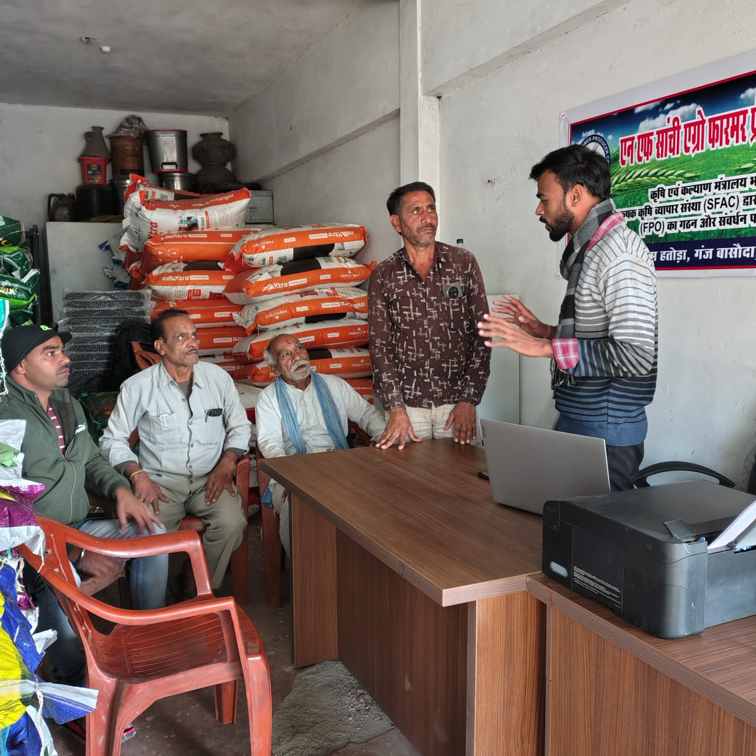 Most member farmers come from villages that have never had a formal producer body. We start at the ground — door-to-door mobilisation, share-capital meetings, board elections — and take each cluster all the way through registration as a legally compliant Farmer Producer Company under the Companies Act. By the end of year one, every FPC has a working board, a member register and statutory books in order.